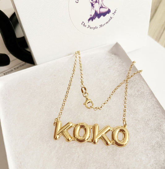 Raised Letter Name Gold Bar Necklace-Kim Kardashian