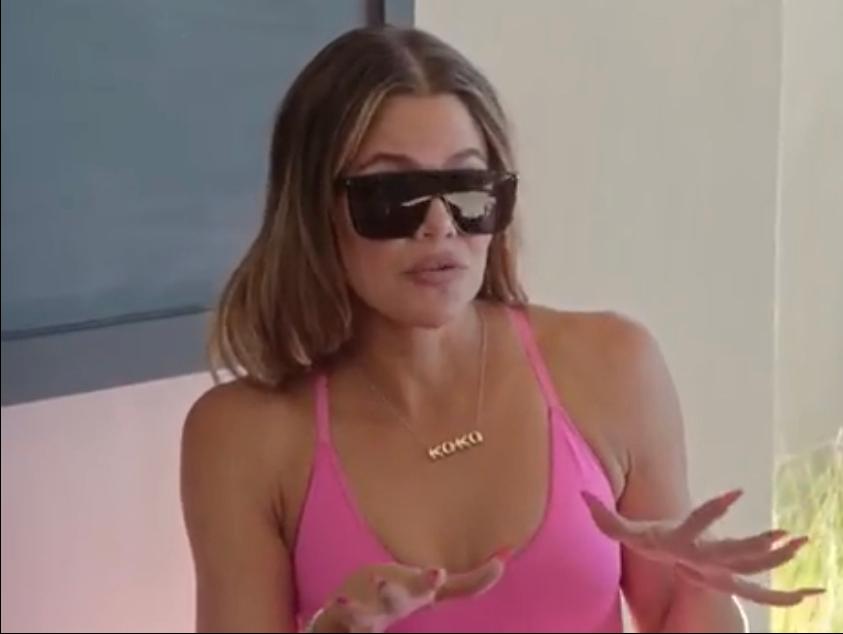 Khloe Kardashian wearing her "KoKo" script name necklace