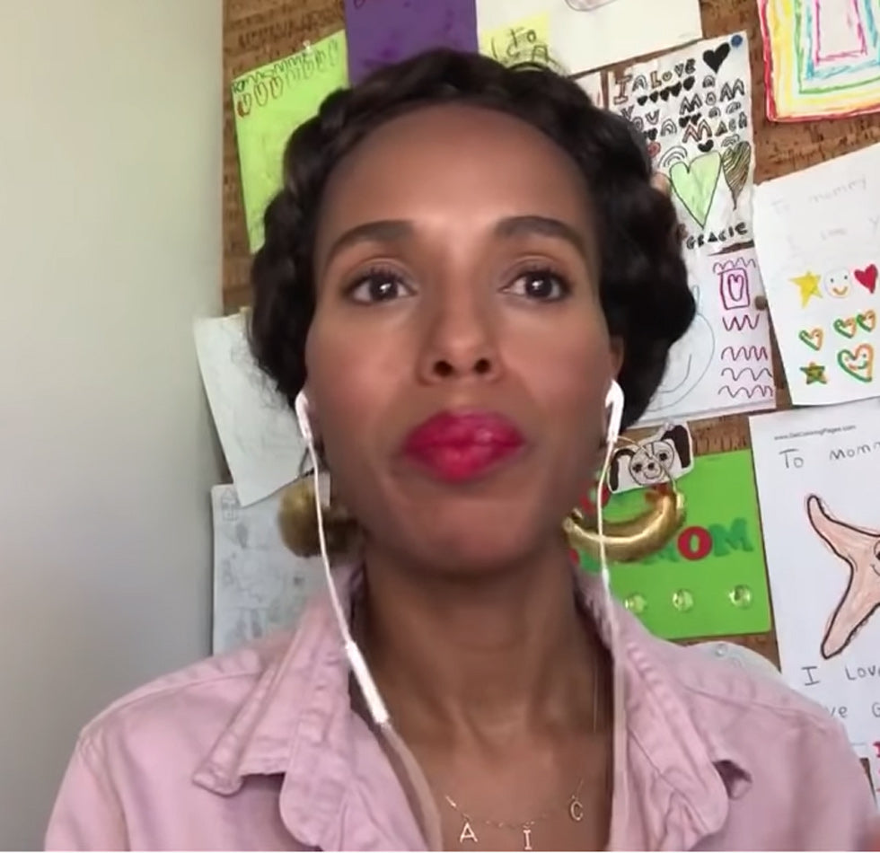 Kerry Washington looking beautiful during her interview with Jimmy Kimmel. Check out that dangling mini initial necklace featuring the initials of her children. Personalized jewelry has been a celebrity favorite and a way to honor their family members and keep them close to their hearts.