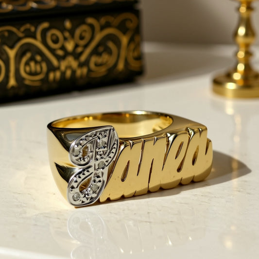 10K Gold Medium Block Name Ring