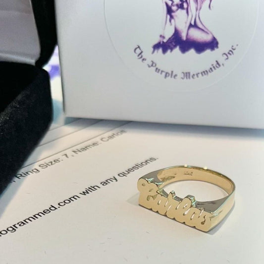 10K Gold Large Name Ring with Tail