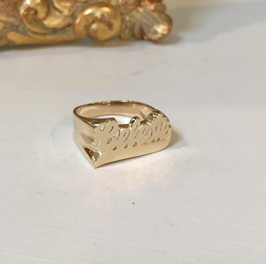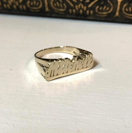 10K Gold Small Script Name Ring