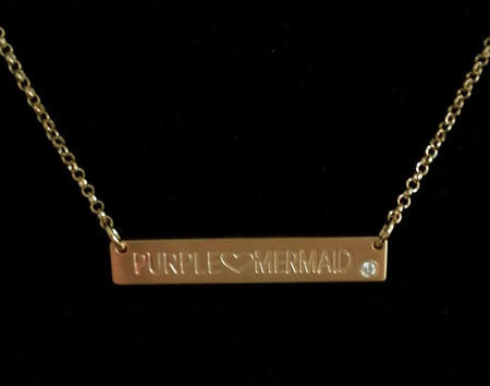 Engraved Gold Horizontal Bar Necklace with Birthstone