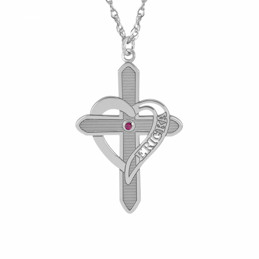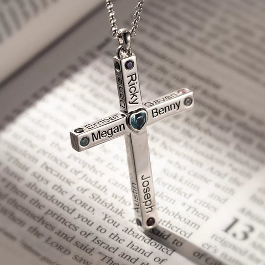 Personalized Birthstone Cross Necklace - Up to 12 Names