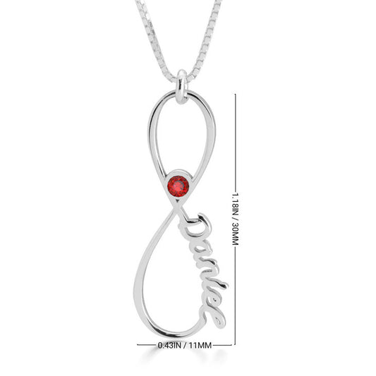 Vertical Infinity Name Necklace - One Name and Birthstone