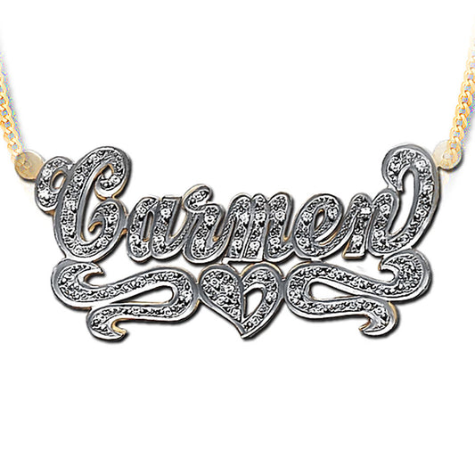 Double Plated Heart Name Necklace w/ Cuban Chain and CZ's