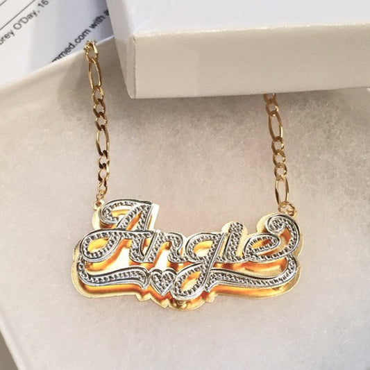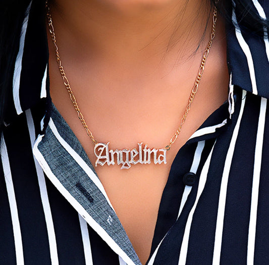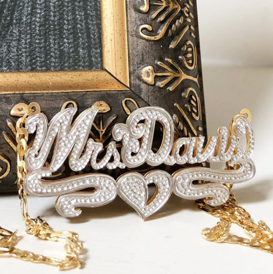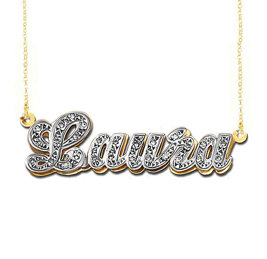 Smaller 3D Double Plated CZ Nameplate Necklace