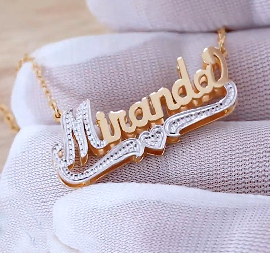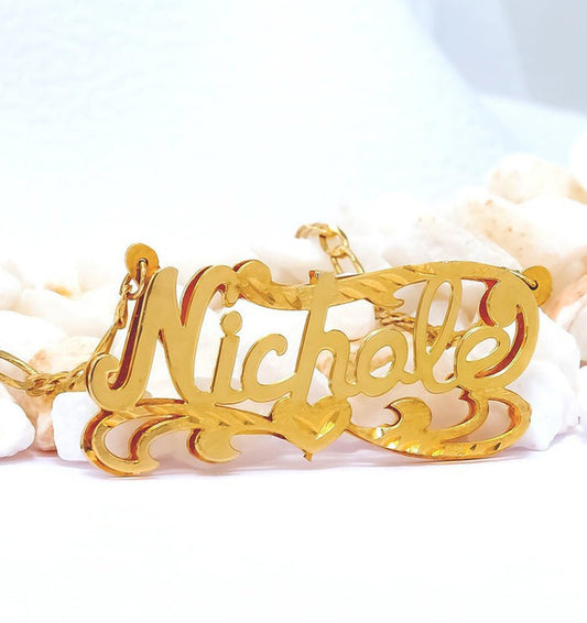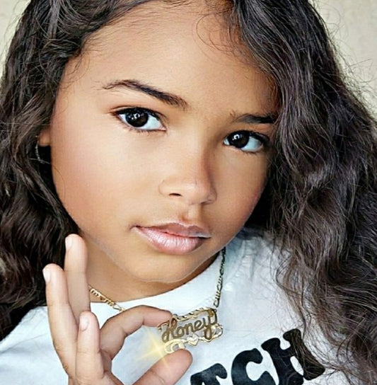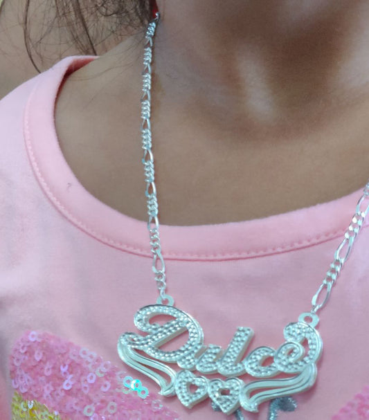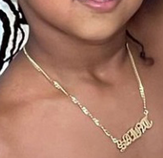 Kids Double Plated Gothic Name Necklace on Cuban Chain