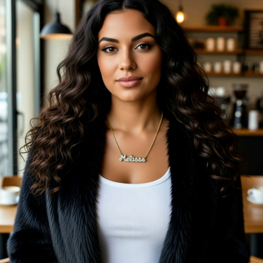 Smaller 3D Double Plated CZ Nameplate Necklace