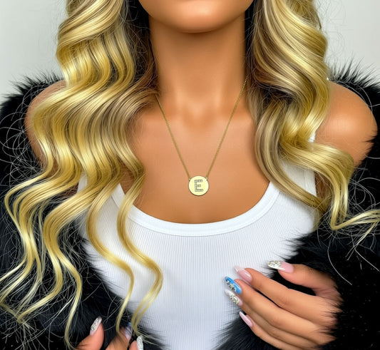 Square Gold Disc CZ Initial Necklace-Chelsea Handler