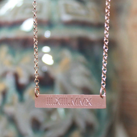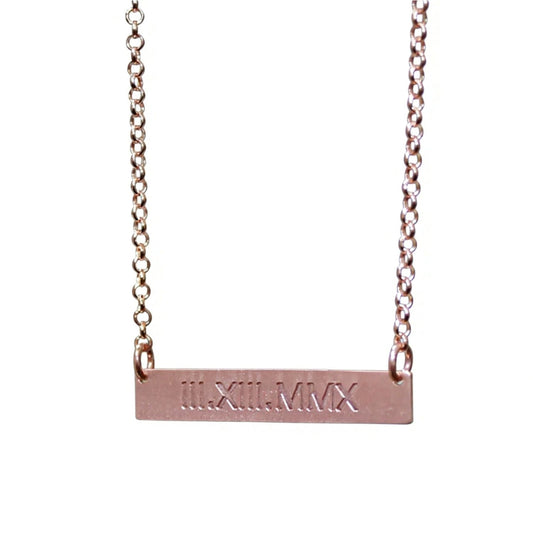 Engraved Long and Lean Horizontal Bar Necklace with Birthstone