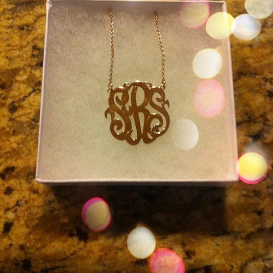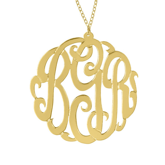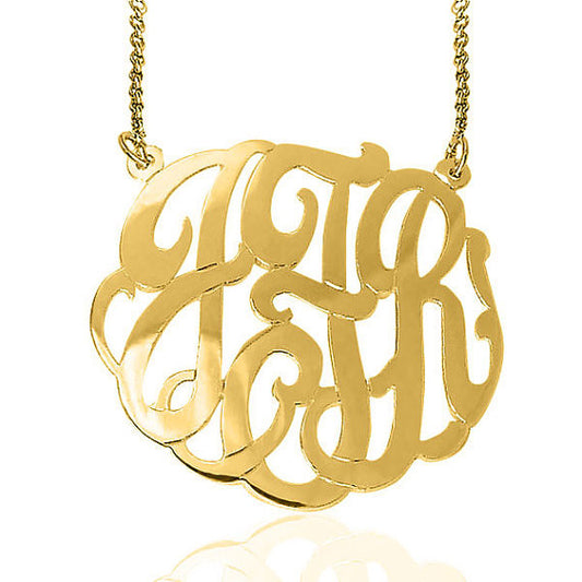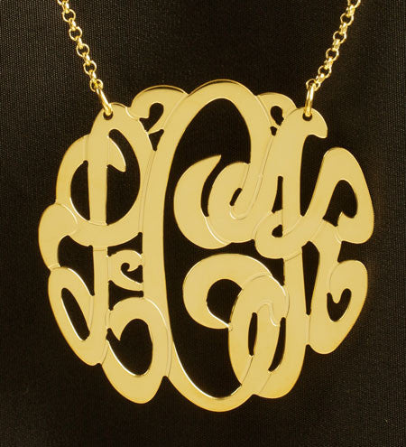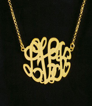 24K Gold Plated Fancy Script Monogram Necklace-Split Chain