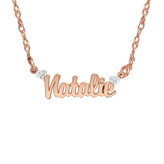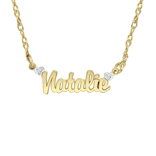 14K Solid Gold Mini Nameplate Necklace with Diamonds