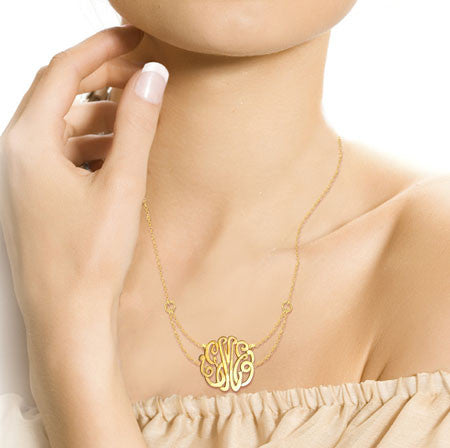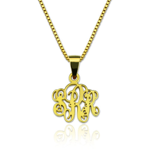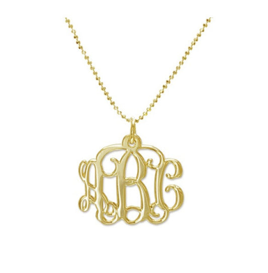 24K Gold Plated Fancy Script Monogram Necklace-Split Chain