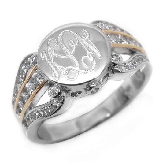 Sterling Silver Twist Split Band CZ Monogram Ring