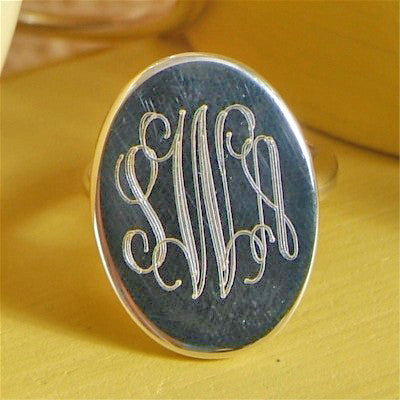 Sterling Silver Oval Flat Face Engraved Band Ring
