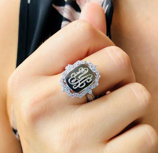 Sterling Silver CZ Rimmed Monogram Stacking Ring