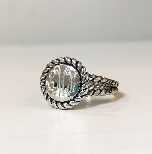 Silver Plated Round Rope Trim Monogram Ring