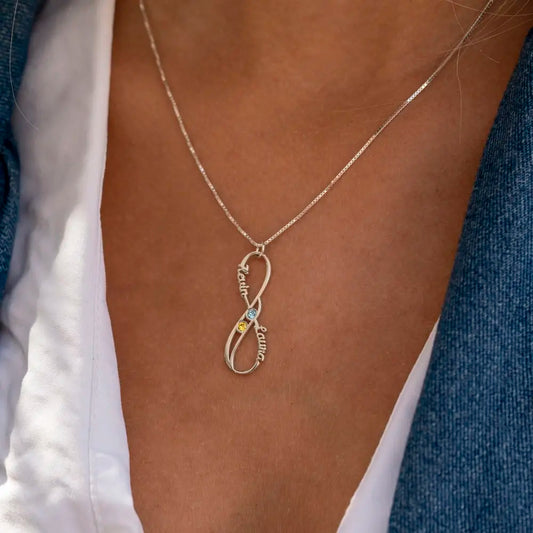 Vertical Infinity Name Necklace - One Name and Birthstone