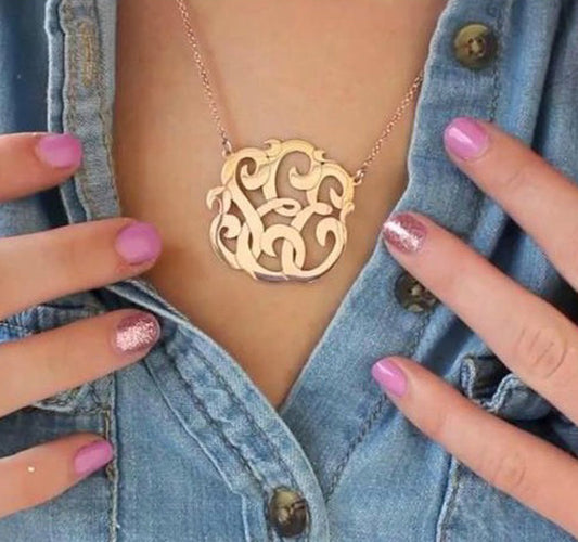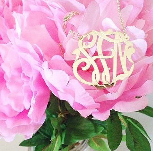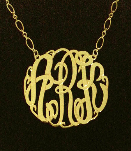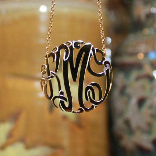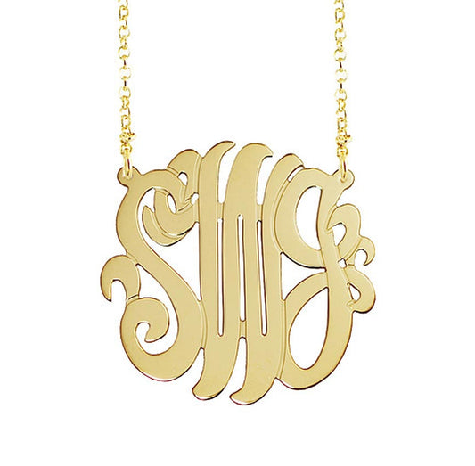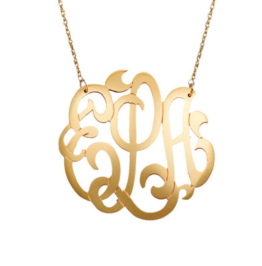 Gold 3D Double Plated CZ Nameplate Necklace with Scroll