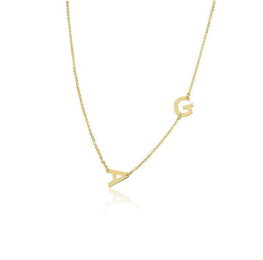3D Double Plated CZ Nameplate Necklace - Two Hearts