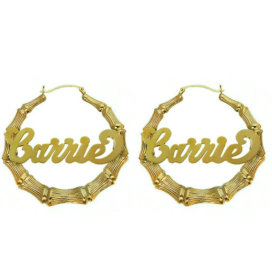 10K gold name hoop earrings will be personalized with your name in a pretty script writing font. This pair of monogrammed earrings shout your style! Guys - these earrings make a great gift for that special lady too. Hoops measure 1", and you can choose 10K yellow gold or 10K white gold. Also available in a more economical option of sterling silver or gold plated (sterling silver plated in 14K gold)