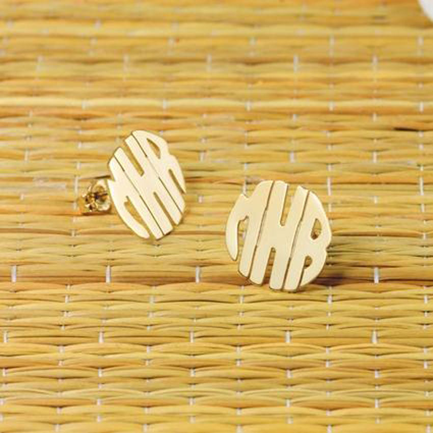 Our handmade 10K gold monogram earrings, featuring a classic block font that will be your new favorite accessory. Choose 10mm size or 20mm size. Also available in 14K gold.