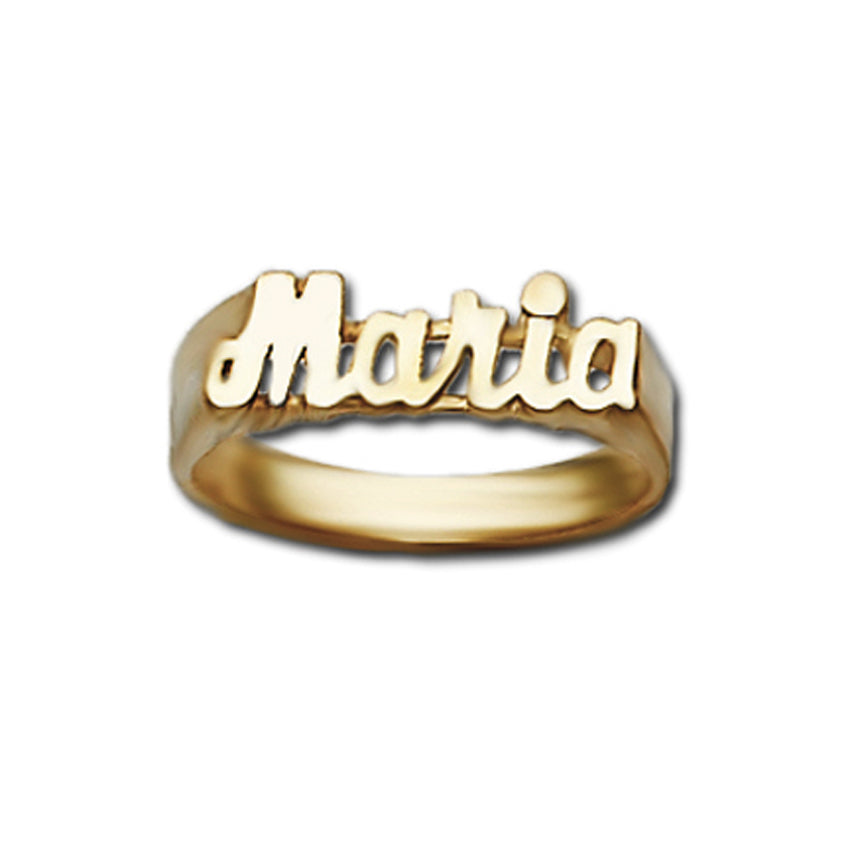 Our 10K gold small name ring features a pretty script font and measures a little 6mm (.23"). Perfect for those who love an understated name ring or are looking for a pinky ring. Hand wax carved and cast, this mini name ring.