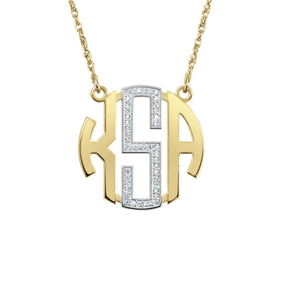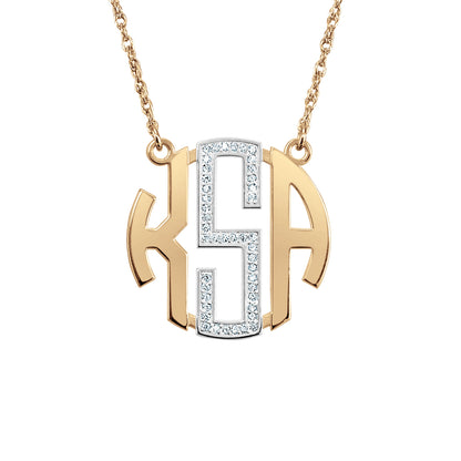 The 14K gold diamond block monogram necklace makes a classic statement. The center letter is covered in sparkling diamonds. The number of diamonds & total carat weight depend on your unique piece. We use as many diamonds as we can to create a fully luxurious diamond monogram. This classic 14K gold diamond monogram necklace will her favorite for a lifetime.
