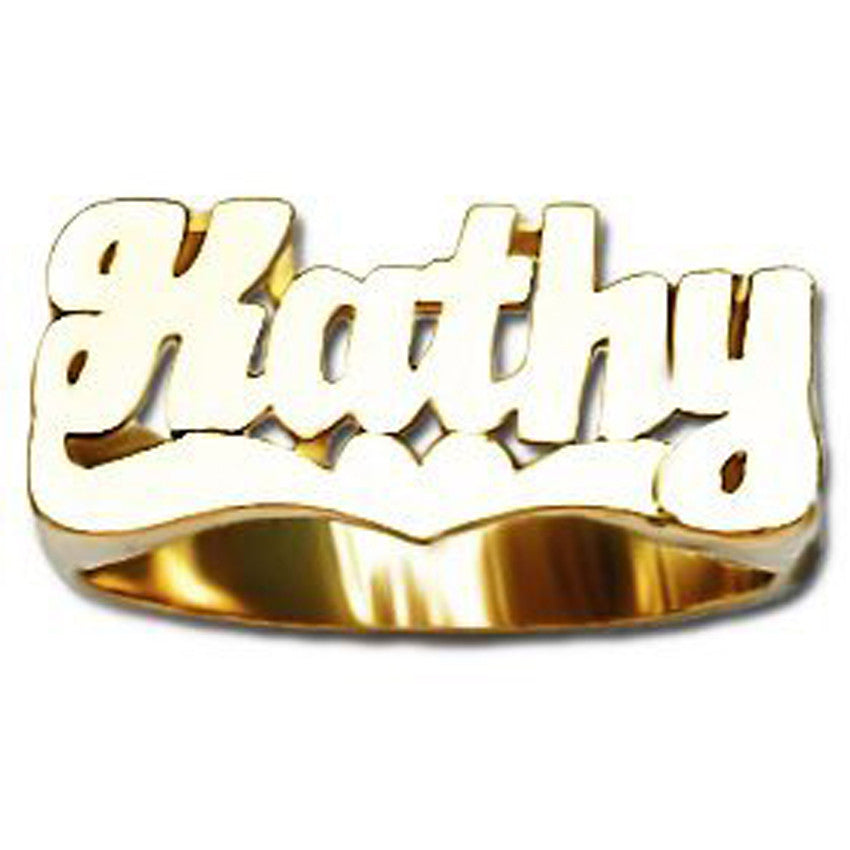 This beautiful 14K gold name ring features a hand cut design that is perfect for showing off your name, accentuated by a swirly tail and a heart. This makes a perfect gift for that special someone. This heirloom quality name ring is the ultimate extension of your personality! The classic style of this gold name ring perfectly accents your name in a script font.