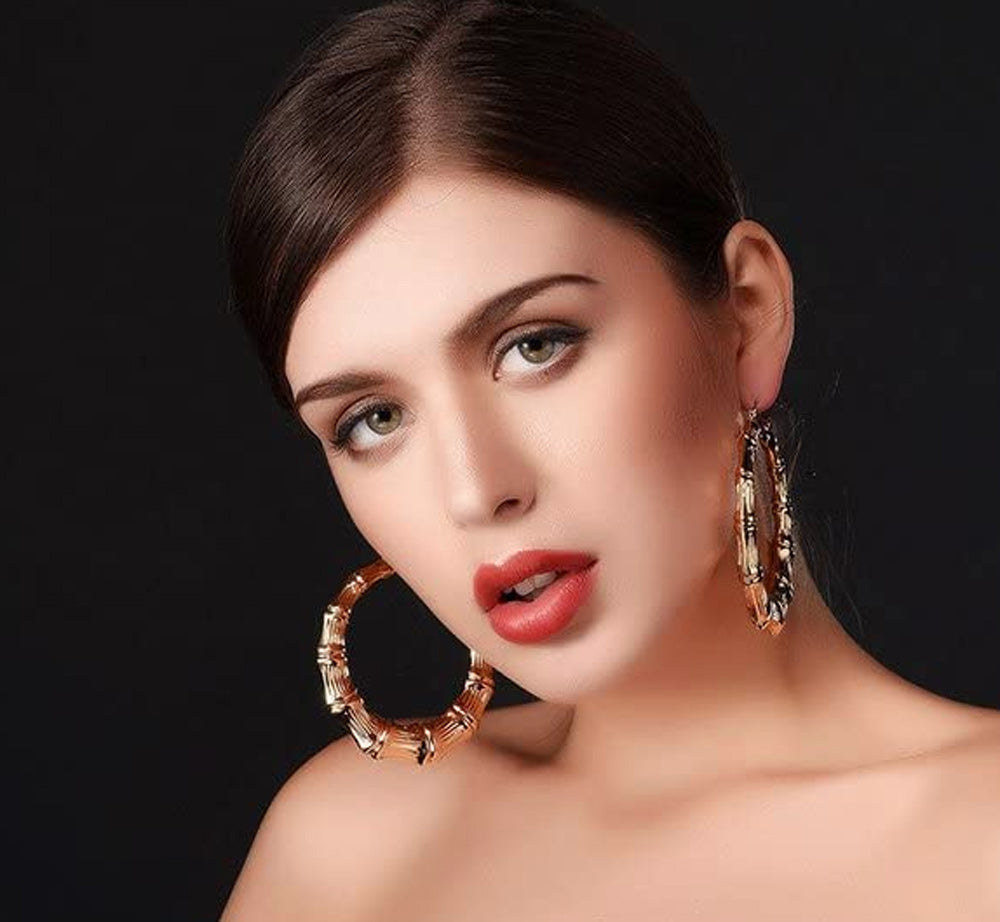 Our 18K gold plated Bamboo Hoop Earrings are custom made in some great sizes. Choose from 40mm (1.5"), 45mm (1.75"), 50mm (2"). 55mm (2.16"), 65mm (2.55"), 70mm (2.75"), 75mm (3"), 80mm (3.14"), 85mm (3.34"), 90mm (3.5") and 100mm (4"). Bamboo hoop earrings are a style staple. Two earrings included.