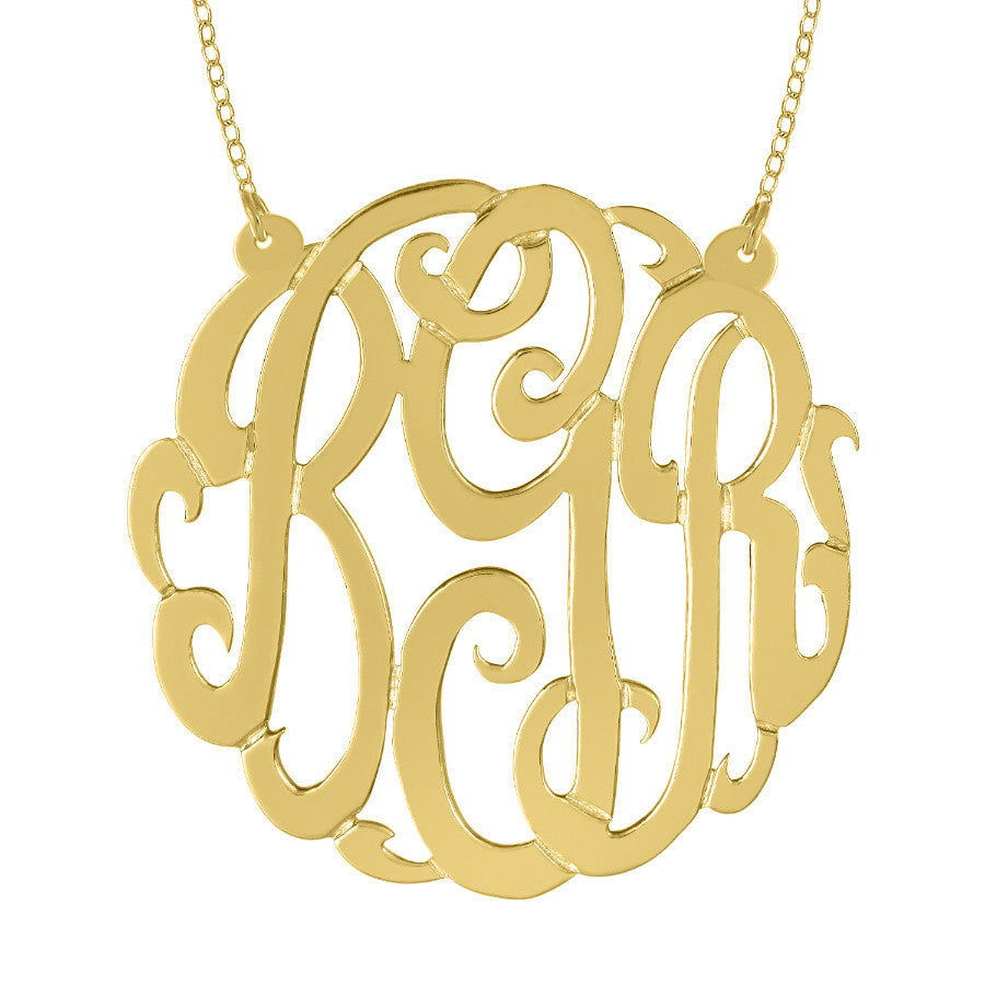 24K Gold Plated Fancy Script Monogram Necklace-Split Chain