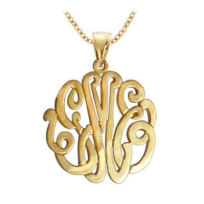 This beautiful, handmade script 24K Gold Plated monogram necklace is the perfect choice. The pendant is made of .925 sterling silver and then dipped heavily in 24K Gold, completed with a shiny, luxurious finish. Hangs beautifully from a center loop, on your choice of a 16", 18" or 20" 24K Gold Plated link chain.