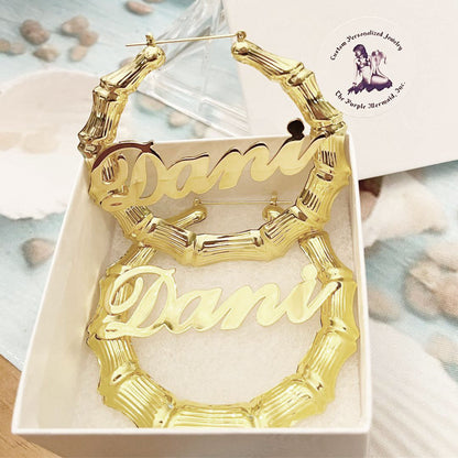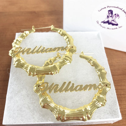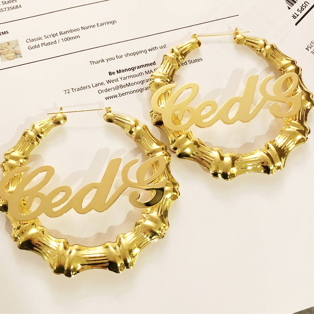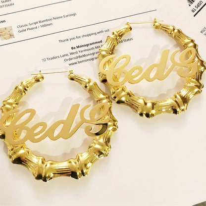 Classic Script Bamboo Name Earrings