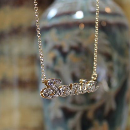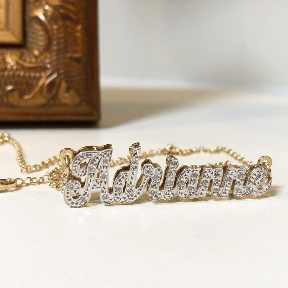 Gold 3D Double Plated Nameplate Necklace with CZ's