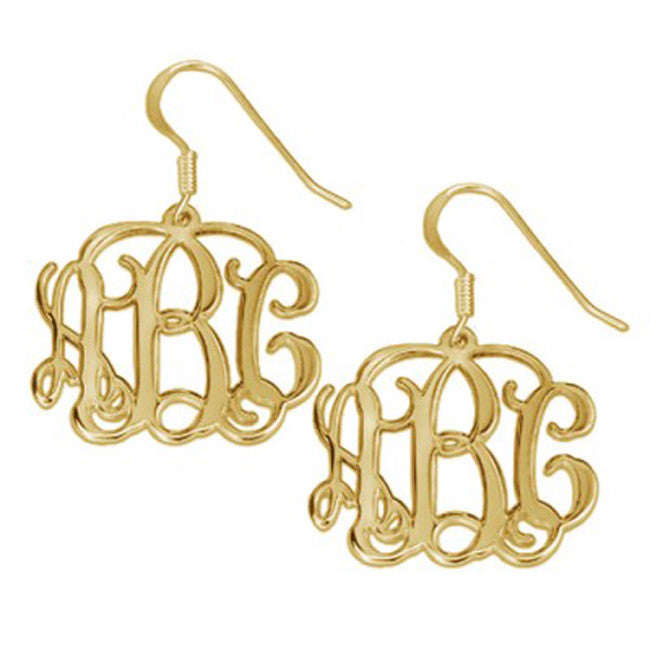 These 18K gold plated monogram earrings are the perfect addition to your jewelry collection! Wear your monogram earrings with your jeans, or with that little black dress! These gorgeous fishhook style dangle earrings are personalized with your initials! Thickness: 0.03" and measure 20mm (.78")". Also available in sterling silver and 18K rose gold plated.