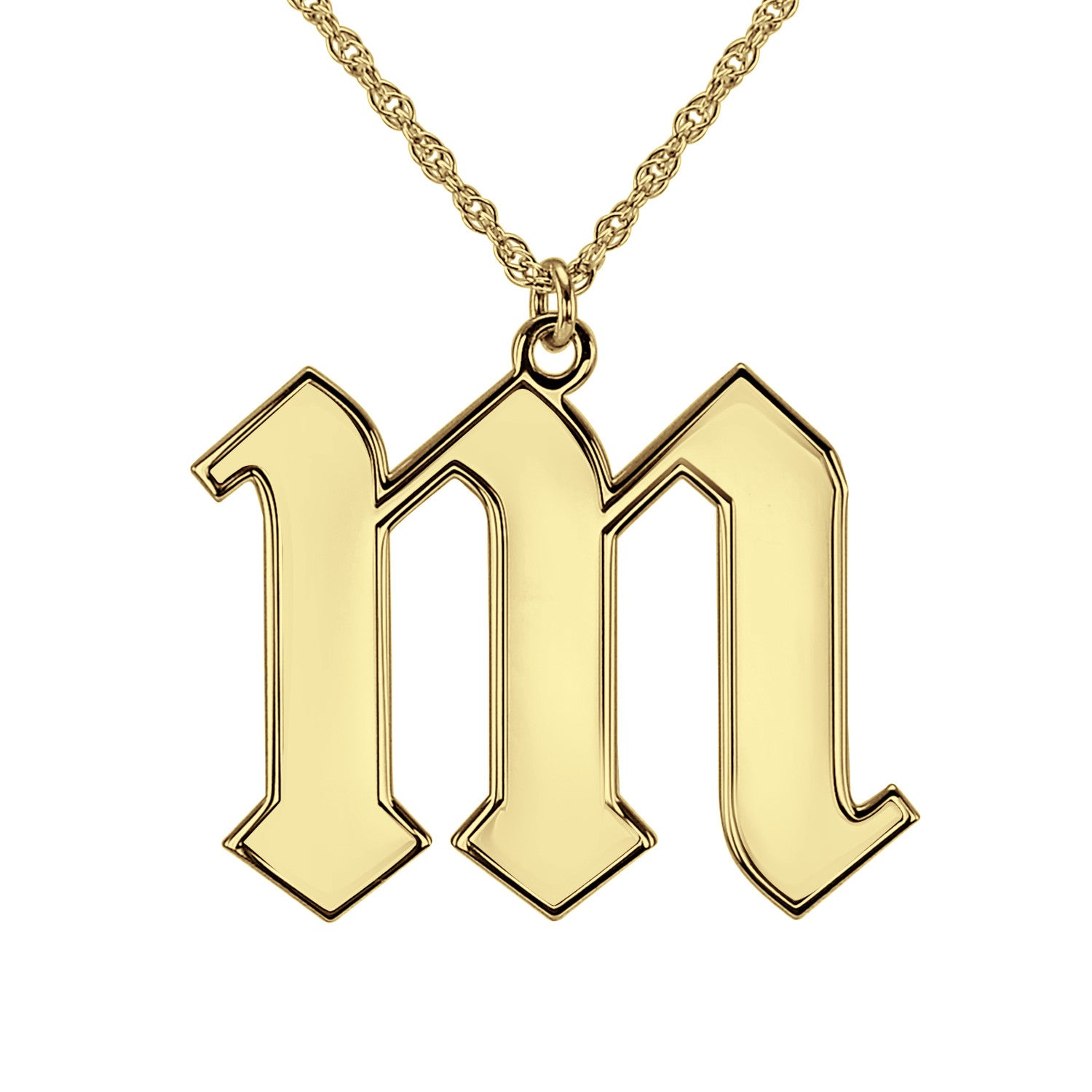 A unique personalized piece featuring your single initial in a classic lowercase gothic font that will never go out of style. (23mm or .9").  Hangs beautifully from a 16" or 18" chain with a spring ring clasp.
