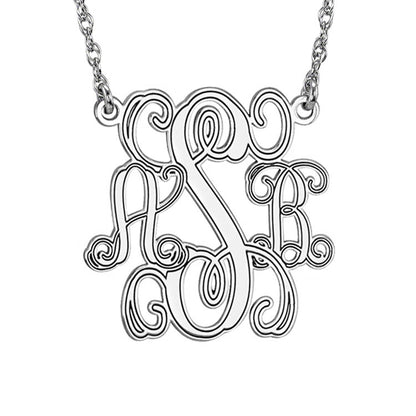This elegant monogram necklace is hand drawn in interlocking script lettering, personalized with your three initials in sterling silver or gold. The perfect gift and truly one of a kind.  Choose from mini 15mm (.59") small 18mm (.7"), medium 25mm (.98") and large 40mm (1.57").