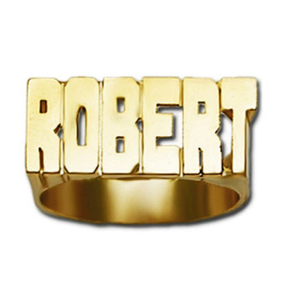 Large Block Gold Name Ring