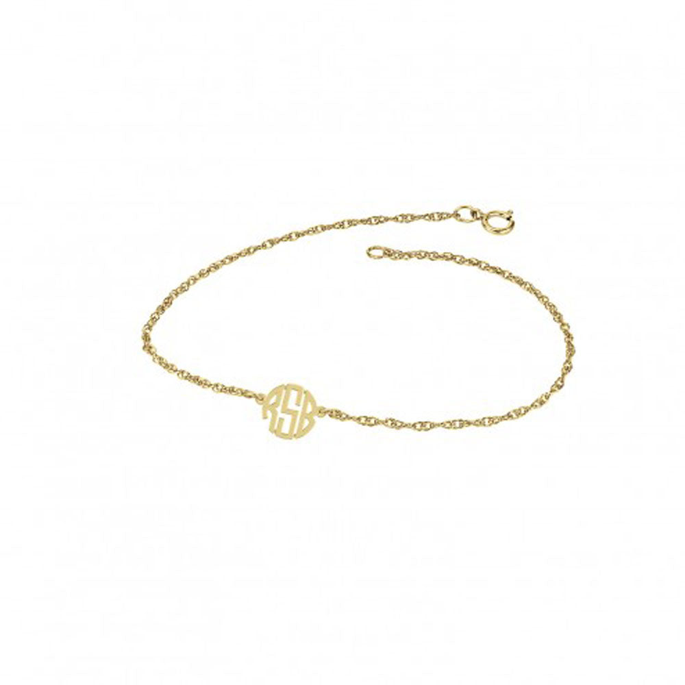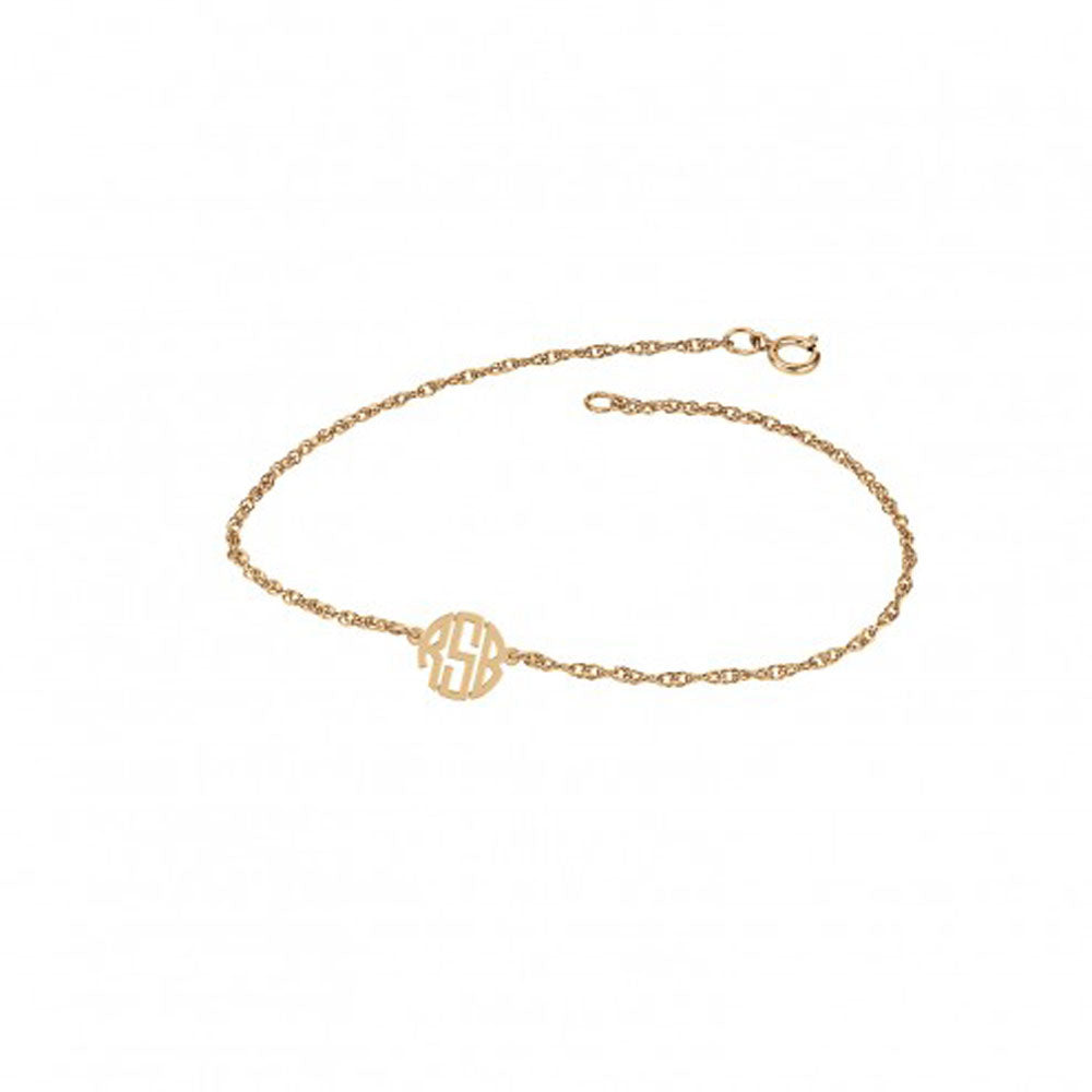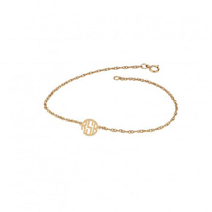 This mini 10mm (0.4") block monogram bracelet will feature your three initials in a classic block font. Available in gold plated, rose gold plated, .925 sterling silver, 10K gold or 14K gold. The 1.25mm rope chain bracelet measures 6.25" - 7.25" adjustable with a spring ring clasp. This delicate monogram bracelet makes the perfect gift.