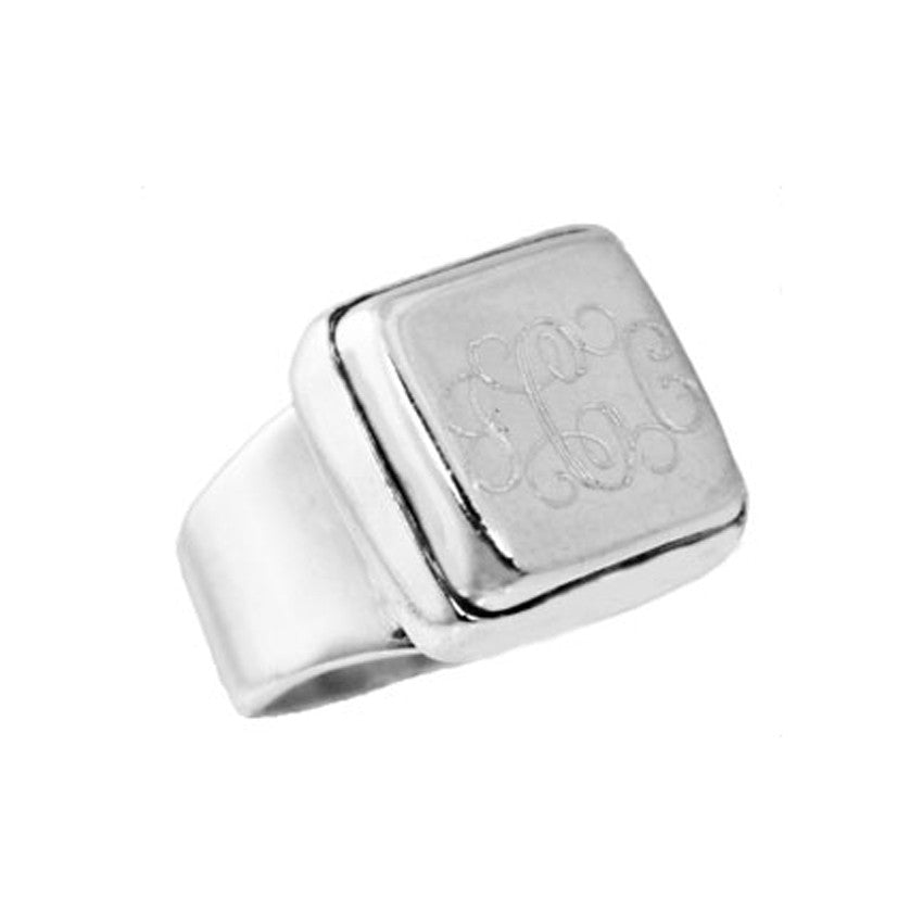 Our monogram sterling silver ring features a beveled edge, and is personalized just for you. Available in sizes 6-9