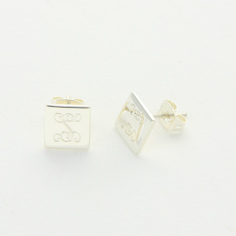 This great little pair of monogrammed Sterling Silver square stud style earrings is a great addition to your jewelry collection. Measure 0.5". Coordinate with bracelets and necklaces for a real personalized look!
