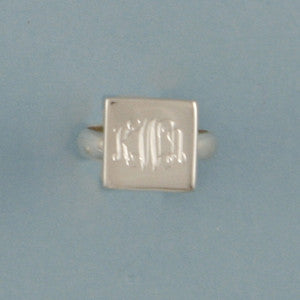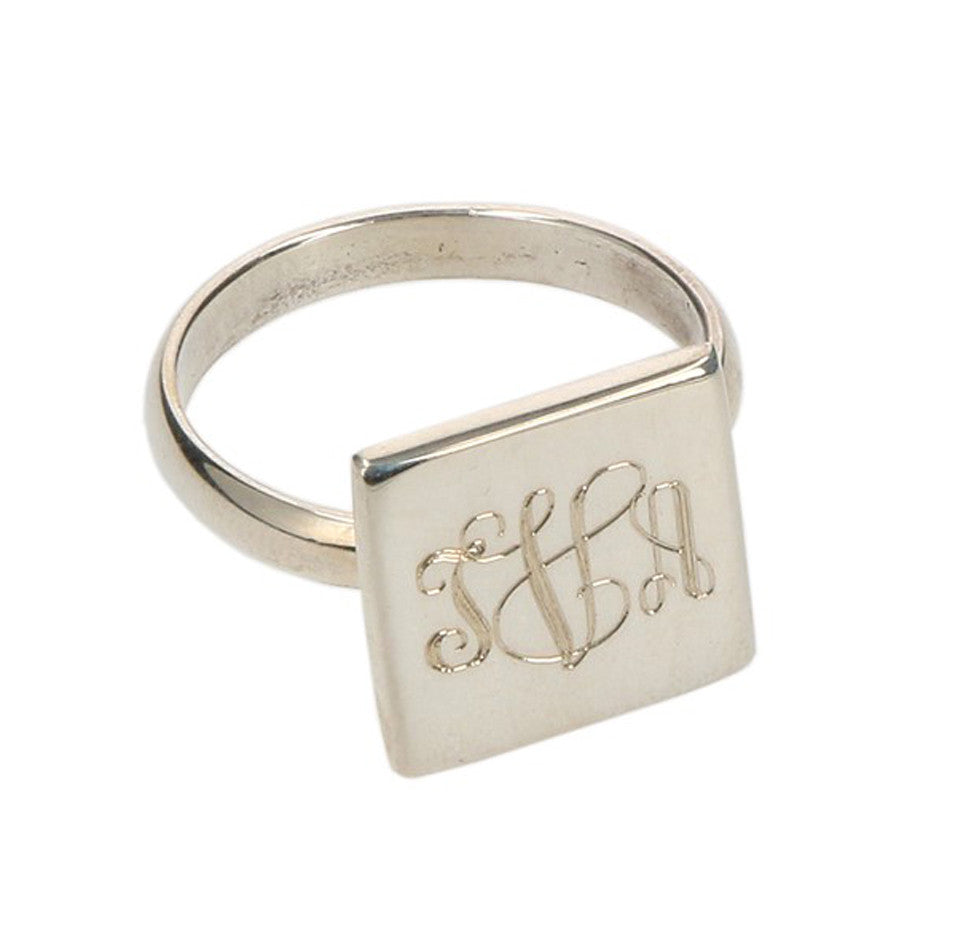 This monogrammed sterling silver ring is proof that there is beauty in simplicity. The 14mm (0.55") square sterling disk is perfect for your monogram. Whole sizes 5-9.