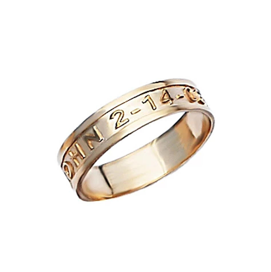 - example: JOHN 2-14-2016. You can choose text other than name and date, but it will be all capital block font. Shorter text will be repeated around the ring if space allows.