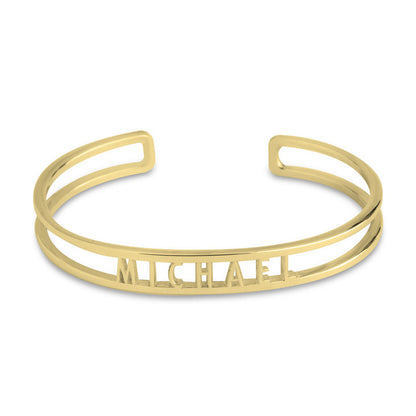 The name bangle cuff bracelet is trendy and the perfect accessory. Personalized with a name or word of your choice, up to 10 characters max. Makes the perfect mother's bracelet too. Available in two sizes.