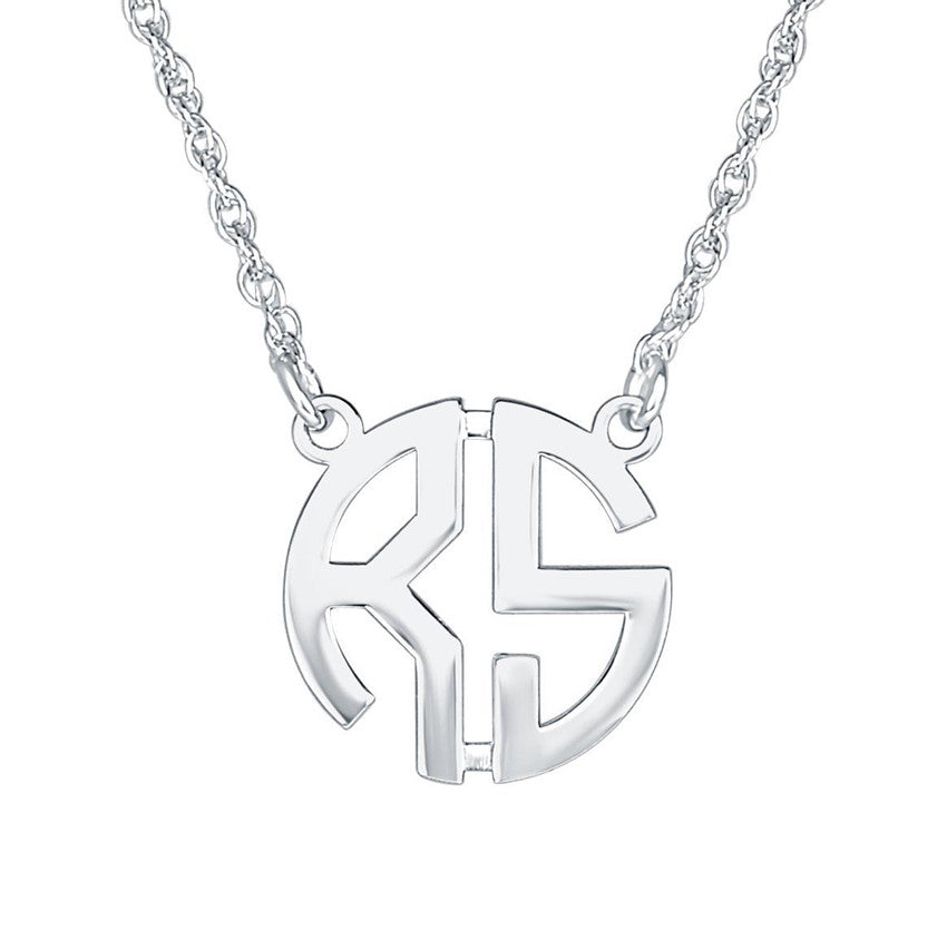Made from the finest materials, this unique monogram necklace can be personalized with your two initials in a classic block font while hanging from an rope chain with a spring clasp. Available in Sterling Silver, Gold Plated, Rose Gold Plated. Three great sizes. The mini size is on trend, and perfect for layering! Great for ladies who only have two initials, or as a couples necklace.