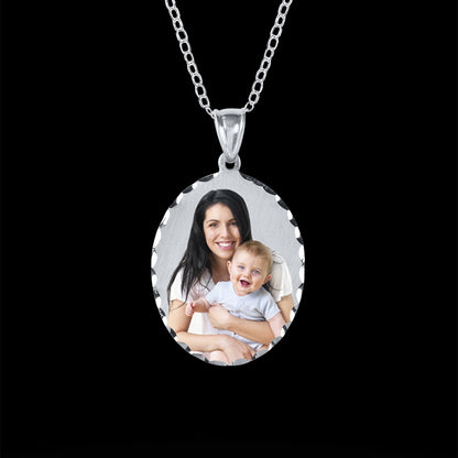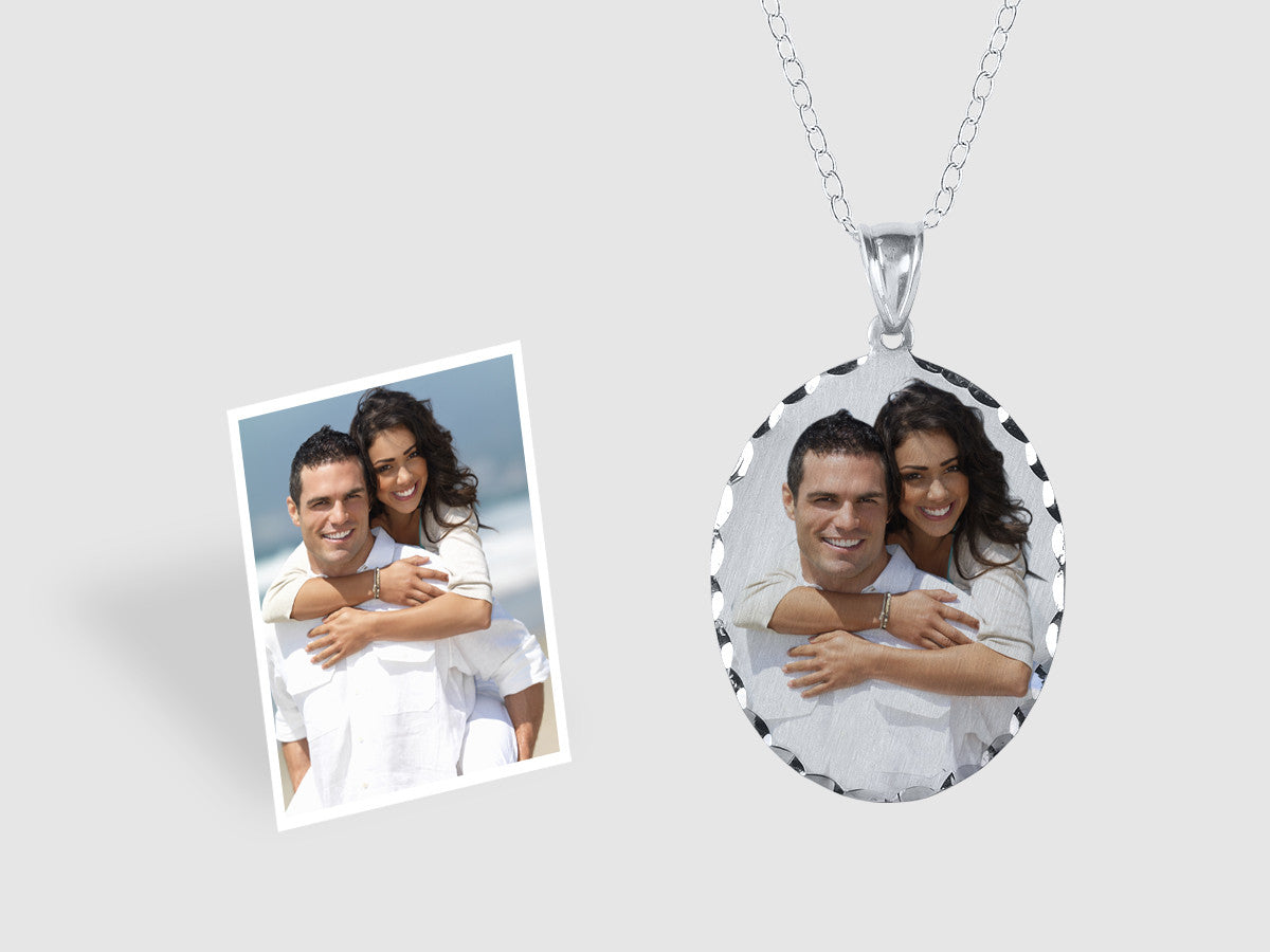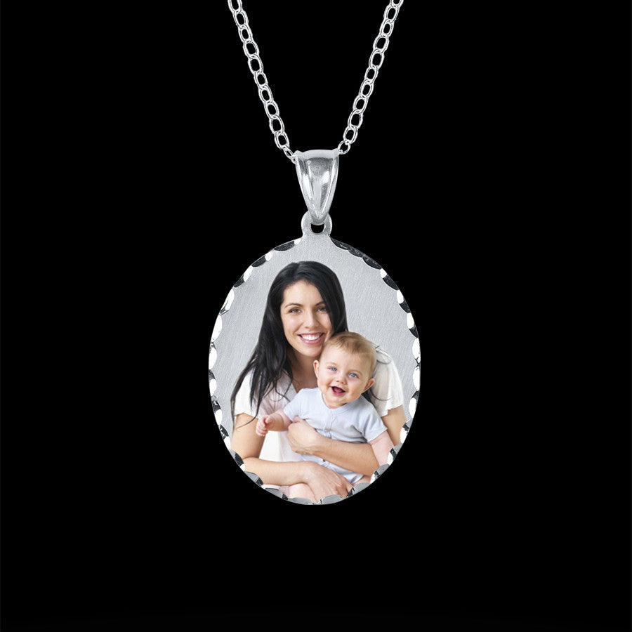 The oval photo charm necklace is the perfect way to wear those you love close to your heart. The diamond cut charm is available in sterling silver or 14K gold vermeil (sterling silver dipped in 14K gold). Just upload your color or black and white photo and we will do the rest. Perfect for layering.
