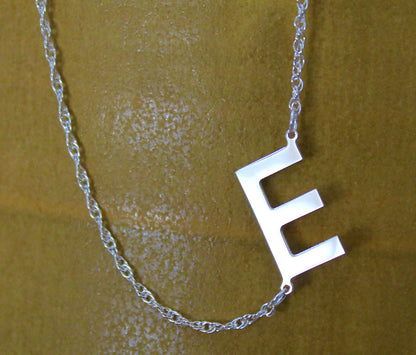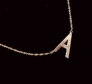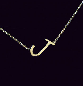 Our sideways initial necklace hangs beautifully from a delicate rope chain, and is the perfect way to personalize your look. This sideways initial necklace features a 1/2" or 3/4" 14K gold vermeil letter draped beautifully on a 16" gold vermeil rope chain. You can choose an 18" chain or Sterling Silver if you prefer. The side initial necklace is perfect alone, or for layering.