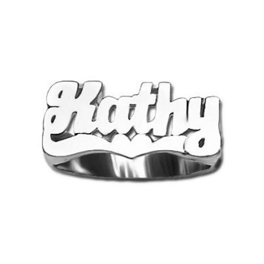 This beautiful sterling silver name ring with heart features a hand cut, script design that is perfect for showing off your name. This makes a perfect gift for that special someone. This heirloom quality ring is the ultimate extension of your personality!