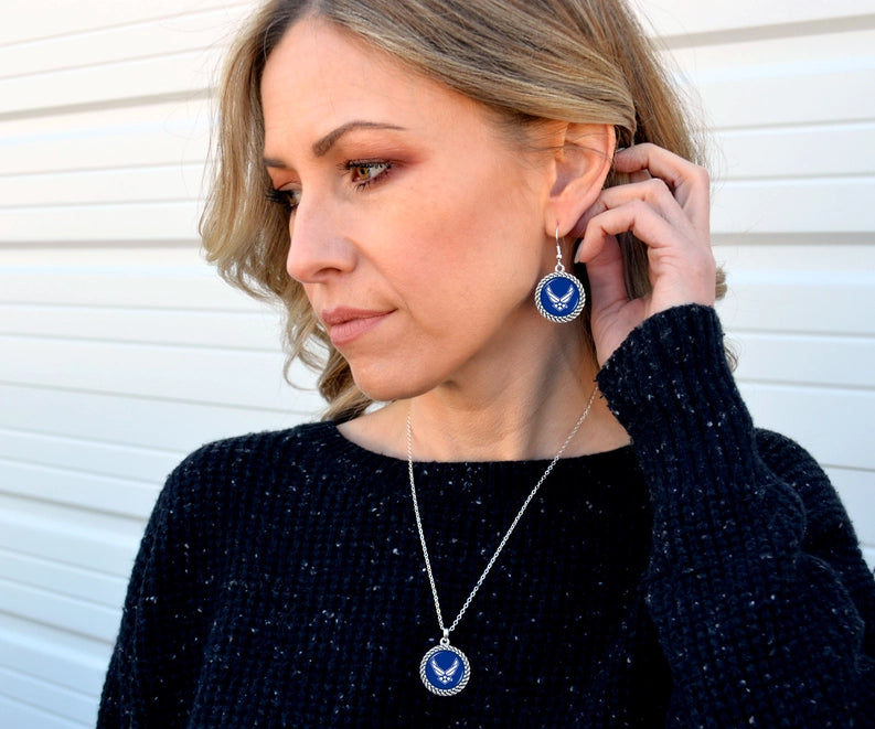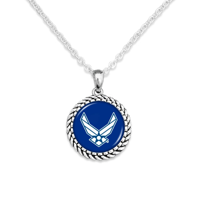 This United States Air Force Charm necklace is the perfect way to support and show the love for the USAF! This USAF charm necklace features an 18" chain with extender and a rope edge charm. Perfect gift!